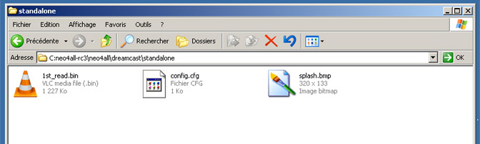 - Copiez les fichiers "1st_read.bin" , "config.cfg" et "splash.bmp se trouvant dans le dossier standalone de l'émulateur.